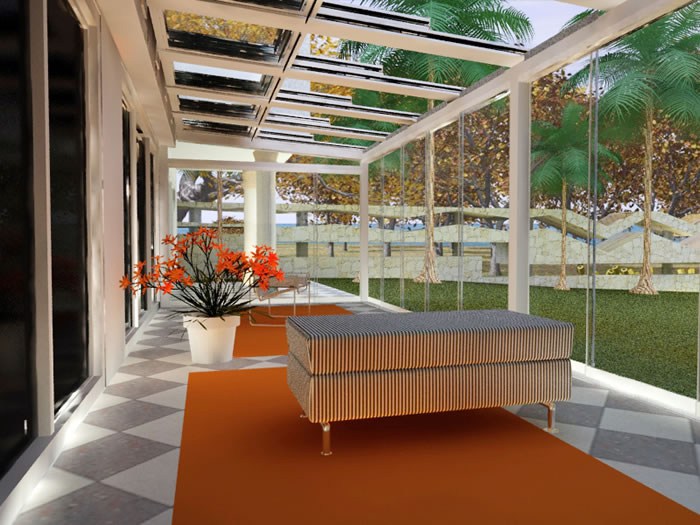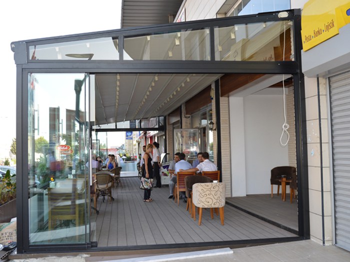 Pokretni stakleni stropovi Sistem se sastoji od plafonskih modula koji se kreću sinhronizirano jedni preko drugih i završavaju u fiksnom području. Do 66% se može otvoriti i zatvoriti ručno ili motorom. Može se koristiti u otvorenom željenom odnosu. Može biti opremljen za otvore do 7 metara. Nema potrebe za dodatnim nosačima za otvore do